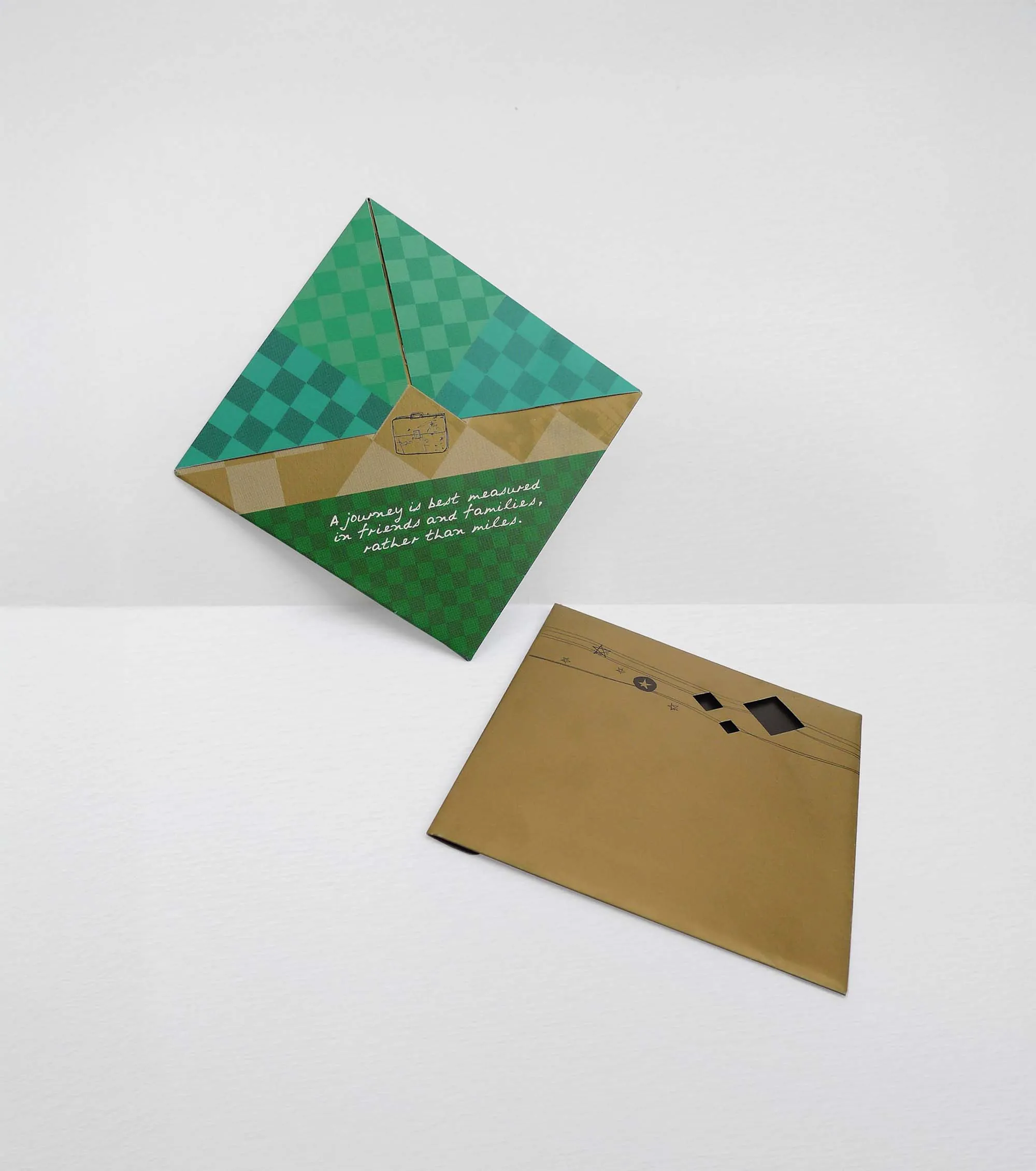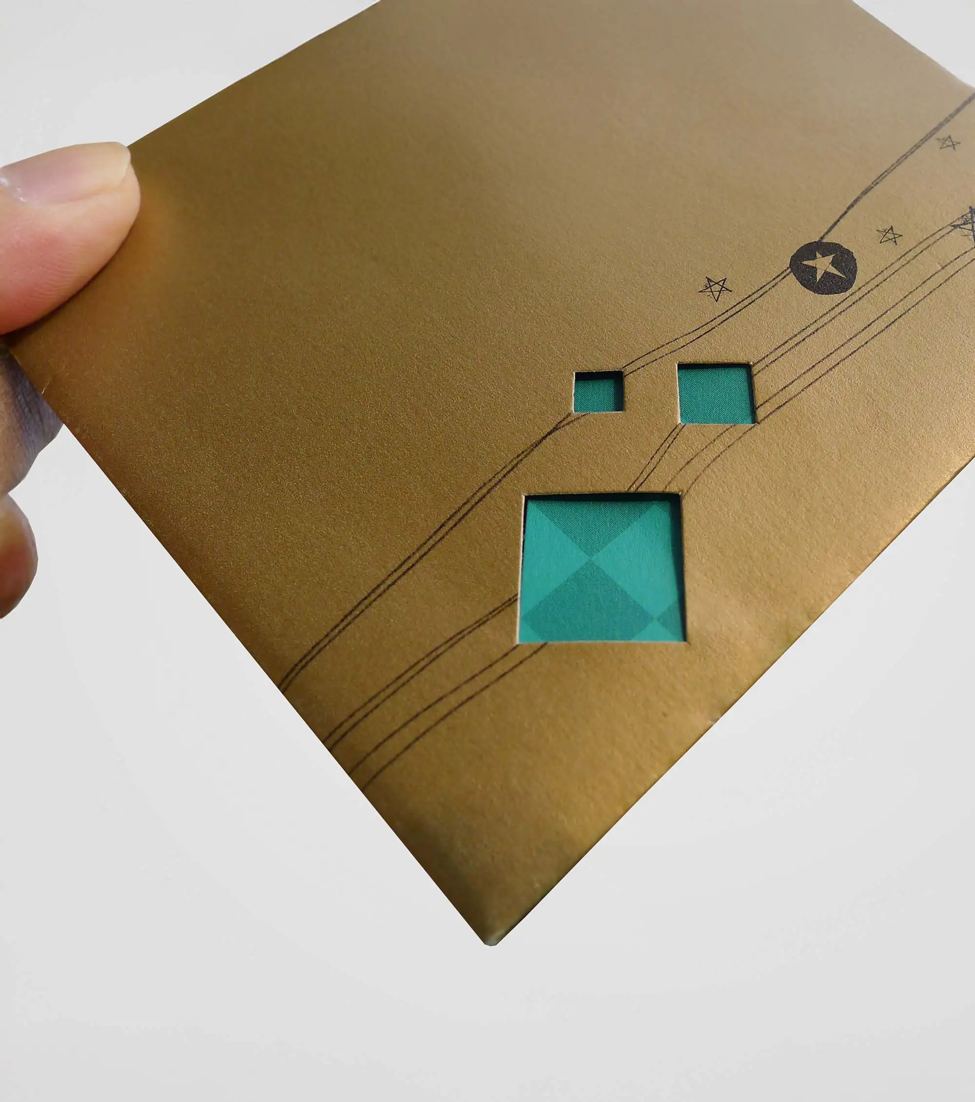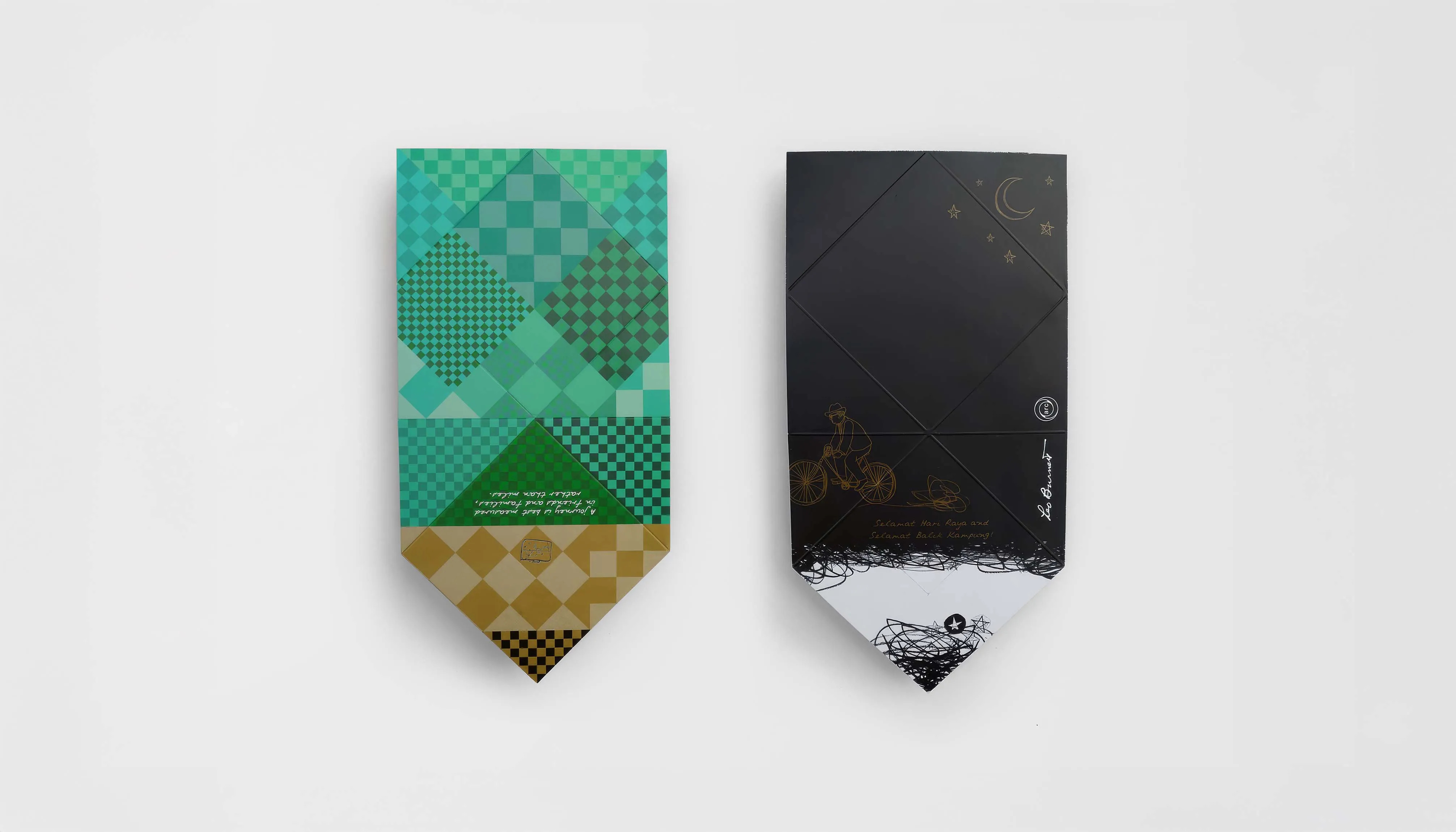 The card adopts the woven form of ketupat, a symbol of celebration and blessing. When opened, it transforms into a black pencil representing the brand, while the interactive envelope reveals different weaving patterns, enhancing the festive experience.